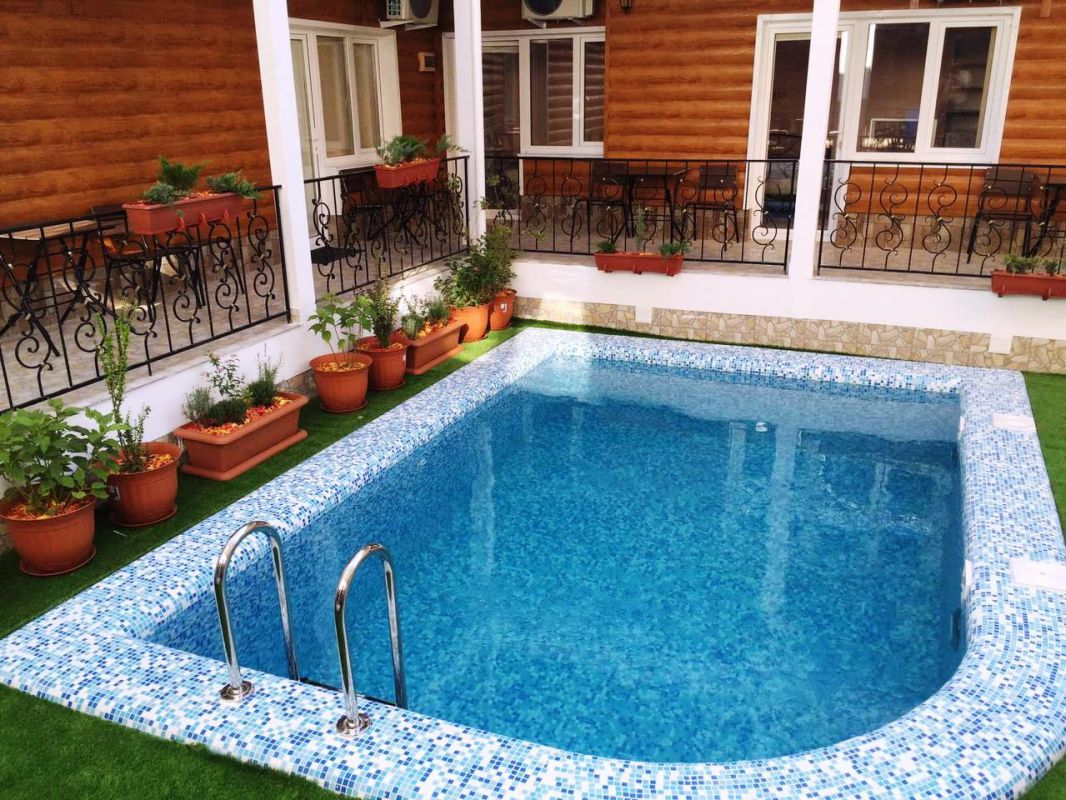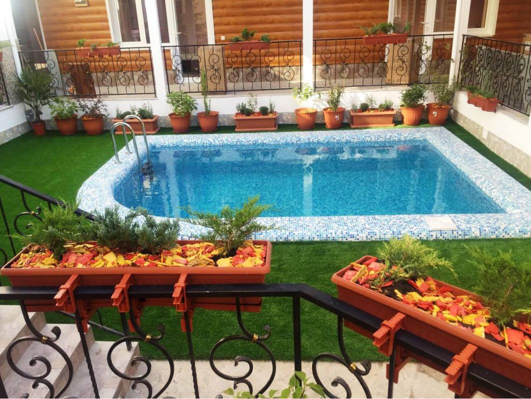 К услугам отдыхающих: уютный закрытый двор, детская площадка, бассейн с подогревом (5х3,5 метров, глубина 1,6 метра), бесплатный Wi-Fi на территории, места для отдыха с мангалом (пользование может быть ограниченно в связи с действием Правил пожарной безопасности), гладильная доска и утюг, фен по запросу, стиральная машина за доп. плату ≈ 200 руб. загрузка, сауна за доп.плату ≈ 700 руб./час.