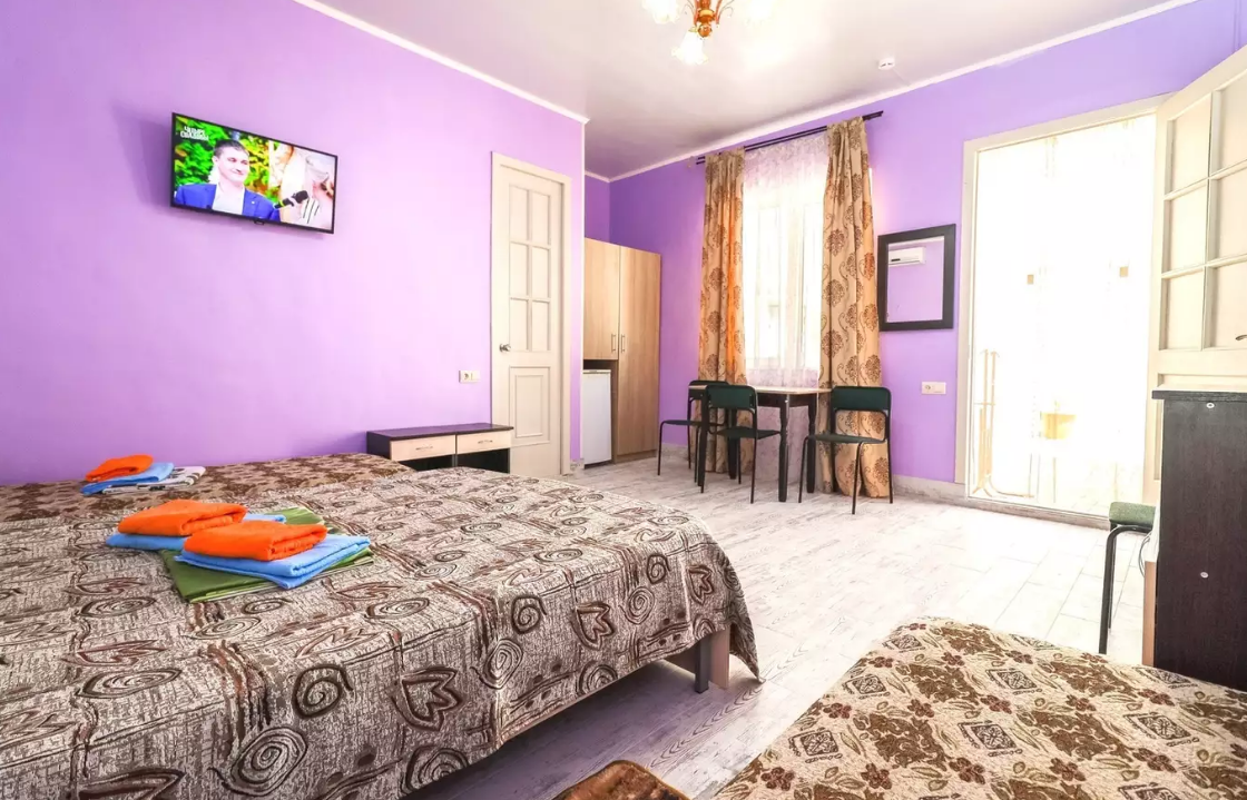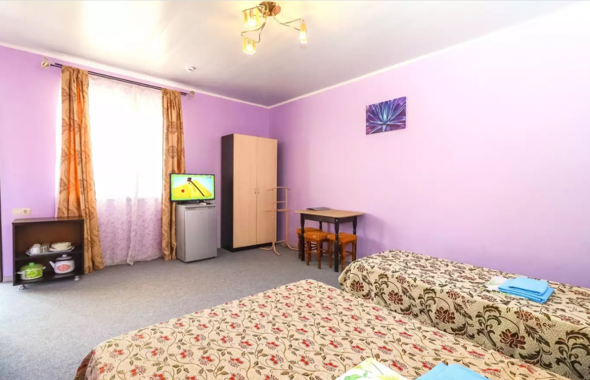Питание: кухня, оборудованная всем необходимым для приготовления пищи. К услугам отдыхающих: закрытая территория, столики, окруженные тенистыми фруктовыми деревьями и виноградными беседками, бесплатный Wi-Fi на территории, подогреваемый бассейн (6 х 4 метра, глубина 1,5 метра), бассейн для детей (4 х 4 метра, глубина 0,8 метров) с шезлонгами (время работы с 8 утра до 19 вечера), две детские площадки (для малышей и детей постарше), качели и батут, мангал и казан (пользование может быть ограниченно в связи с действием Правил пожарной безопасности) в свободном доступе с 9:00 до 20:00.Пляж: песчаный, 8 - 10 минут от гостиницы (высокий берег, спуск к пляжу по лестнице) Внимание: стоимость тура рассчитывается по количеству ночей.Дети: принимаются с любого возраста.В стоимость входит: проезд на комфортабельном автобусе, проживание в гостинице 10 дней / 9 ночей, страховка пассажиров от несчастного случая навремя пути, сопровождающий на маршруте.Условия заезда: информация по отправлению. Заселение в гостиницу после 14:00, освобождение номеров до 11:00.